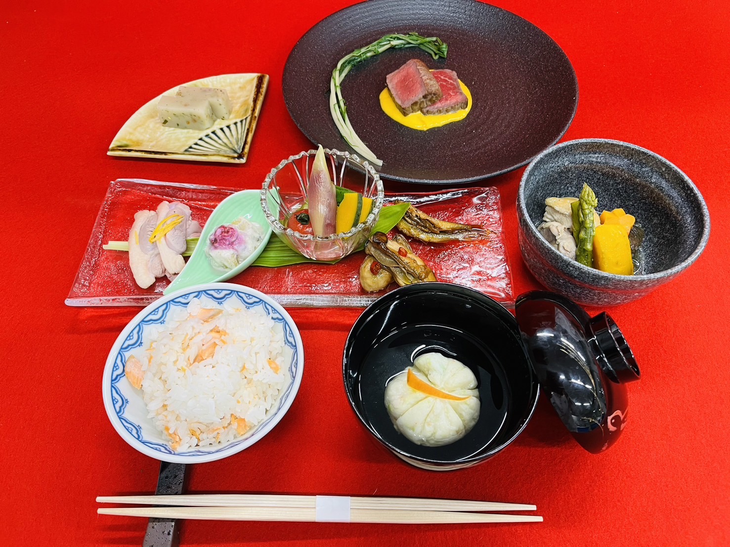 立命館大学の教授、学生の皆さんたちに調理クラブ考案の御膳とファストフードを召し上がっていただきました。ミーティングでは、地域活性化をコンセプトに今後の滋賀県の食を若い力で盛り上げていきたいと考えています。