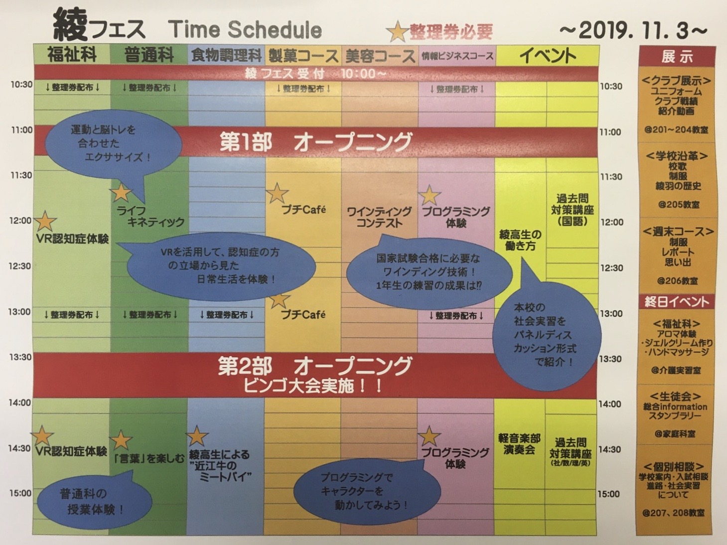 > 綾フェスタイムテーブル!