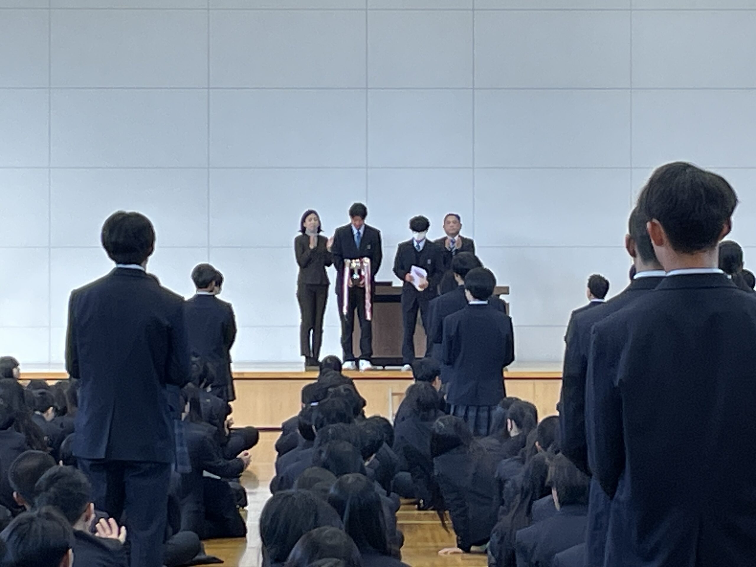 校長先生からは、2学期を振り返りながら、学校行事や日々の学習を通じて生徒一人ひとりが着実に成長してきたことについてお話がありました。