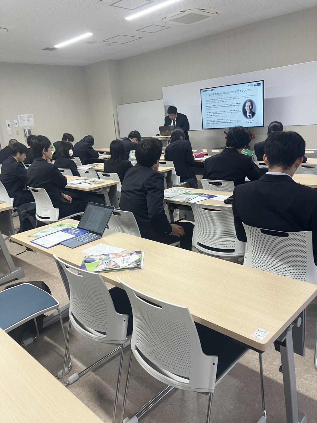 11月6日(水)、2年生が進路学習のため、京都産業大学などの上級学校や専門学校、企業のバスで見学に行きました。各見学場所で、授業体験や施設の見学などをさせていただきました。4年制大学に行った生徒は、大学の食堂で昼食を食べることができ非常に満足した様子でした。関係各所の皆様には大変お世話になり、ありがとうござました。