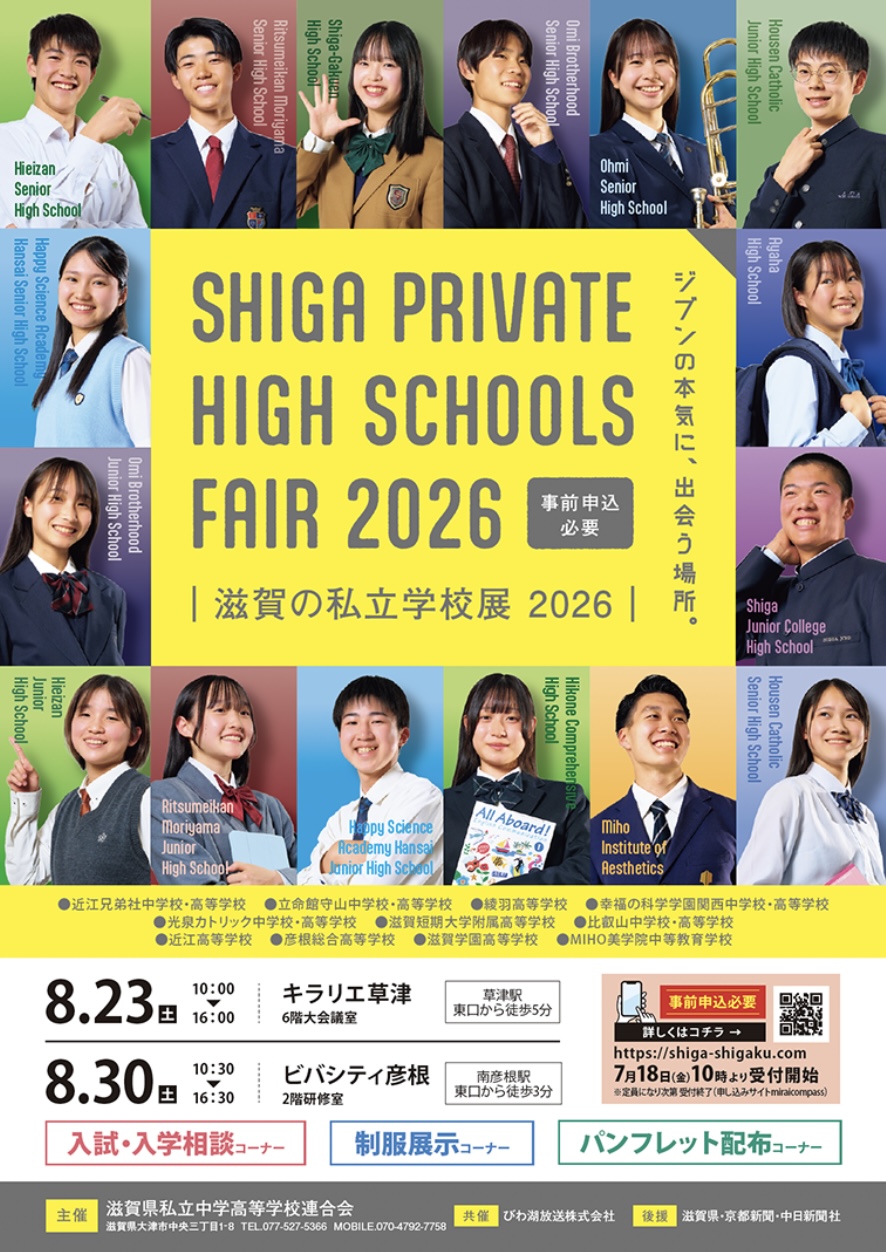 > 8/23(土)30(土)に滋賀の私立学校展2026が開催されます!!